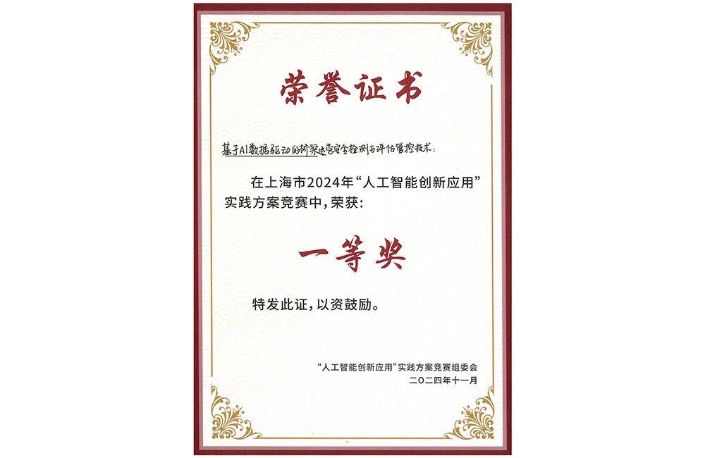 项目《基于AI数据驱动的桥梁运营安全检测与评估管控技术》从入围决赛的18支队伍中脱颖而出,获评一等奖。